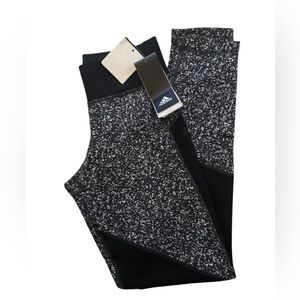 Adidas Speckled Leggings Small NWT | Black & White Print + Mesh Detail |