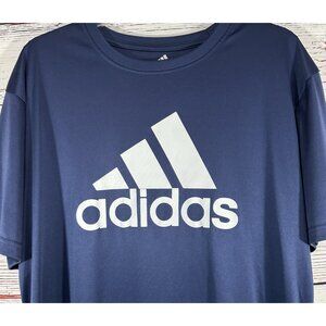 Adidas Spellout Logo Tee Shirt Mens Large Blue Short Sleeve 100% Polyester