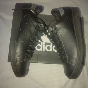 Stylish Adidas Stan Smith sneakers in black wit silver Adidas symbol Perfect for casual wear.