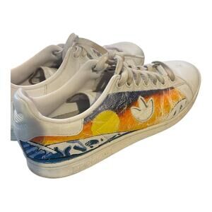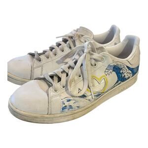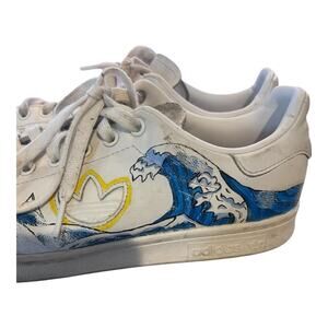 Adidas Stan Smith Sky Ocean Wave Painted White Lace Up Sneakers Artsy Unique 9.5