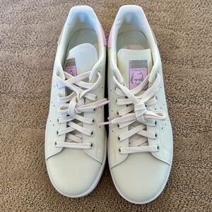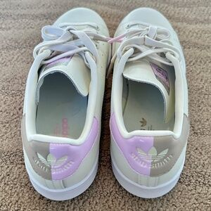 🐰 Adidas Stan Smith sneakers in off-white with beige and pinkish-purple accents. Size 9. NWOT. No box. Thanks for looking,