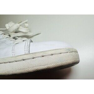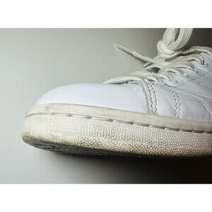 * The Adidas Stan Smith White Green Leather Low Top Sneakers Shoes for Women in size 8.5 feature a lace-up closure and classic Adidas logo accents.