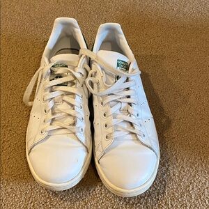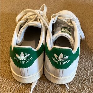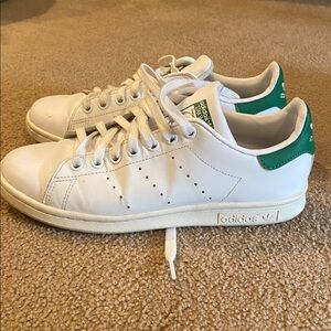 Classic Adidas Stan Smith with green details. Iconic and versatile design.