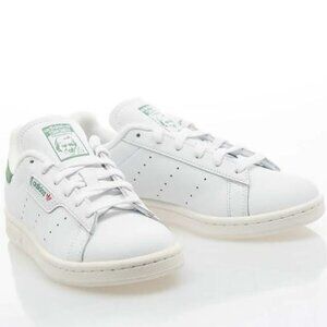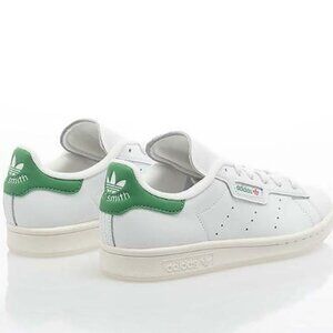 What distinguishes this particular version is the "Preloved Green" hue accenting the heel tab and tongue branding. The soft green shade offers a fresh interpretation of the original Stan Smith green, creating a vintage-inspired yet contemporary vibe. This color detail pays homage to the legacy of the silhouette, while the eco-conscious materials used in the shoe’s construction reflect Adidas' ongoing commitment to sustainability. The result is a versatile, comfortable, and stylish sneaker that honors its tennis heritage while remaining relevant in today’s fashion landscape.