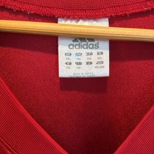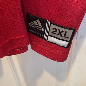 Adidas Louisville football jersey in vibrant red. Features number 17 on the front.