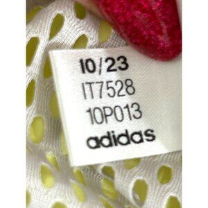 0651B- Adidas x Stella McCartney women’s woven, track top/jacket, S, oversized fit, 10/23, IT 7528, multi sport, High mock neck with zipper behind neck. Bungee cord toggles at neck & hemline. Full front double zippers. Raglan sleeve, side slit pockets with mesh lining, colorblock pattern. Color: chalk pearl/blush yellow.. Looks light gray, neon yellow, tan. Stella McCartney logo on back hips and on left sleeve. Adidas triple bar orange logo. Shell & lining : 100% polyester, recycled; mesh lining. Elastic wrists. 1.75”. Wind ready,