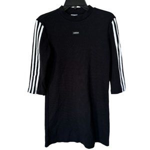 Adidas Stripe Ribbed Sport Dress Black/White 3 Stripes 3/4 Sleeve Woman's Small