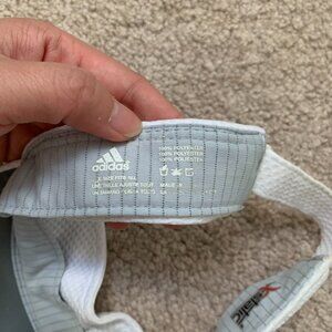 Adidas Sunblock Unisex Visor. You can adjust the length. 100% Polyester. Gently used, some worn signs as you can see in picture 3. Condition is very good. Original is $39.9.