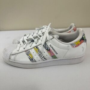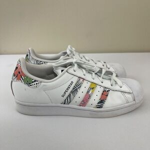 Adidas Superstar J Sneakers Kids‎ Girls Size 5 White Tropical Print FX7400
