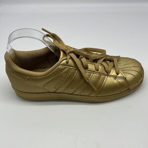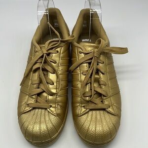 Adidas - Superstar Metallic Gold Flashy Fun Cap Toe Lace Up Sneakers Size 7.5
