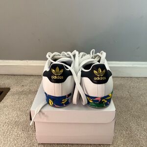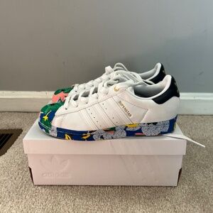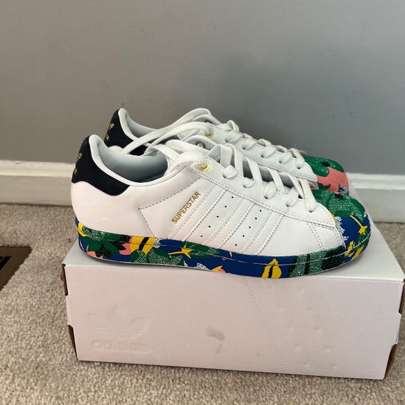 #RARE# adidas superstar shell toe sneakers. I bought two pair for me and my daughter. She wore them twice and out grew them. 7 1/2 women.