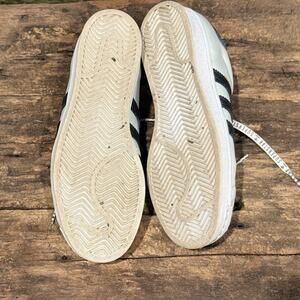 Step up your sneaker game with these rare Adidas Superstar “Sneaker Queen” women’s sneakers in a stylish white/purple colorway. Features include metallic striped detailing and original Superstar lace tags. Size 7.5. Good condition with normal wear.