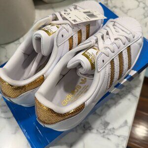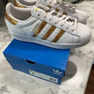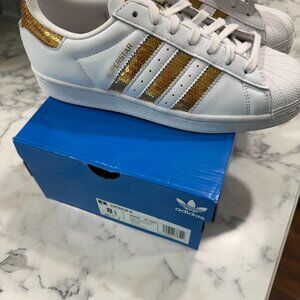 Adidas Superstar White and Sparkly Gold Shoes for sale! Never worn. 8.5