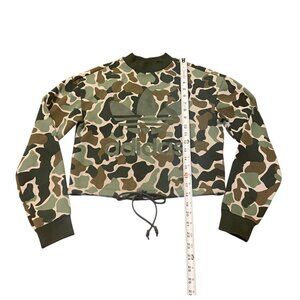 Adidas Sweater Womens Size XS Green Cameo Crew Neck Cropped Drawstring