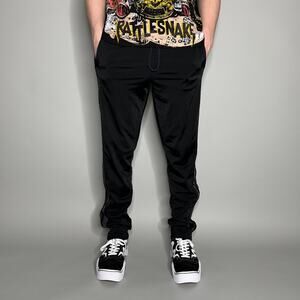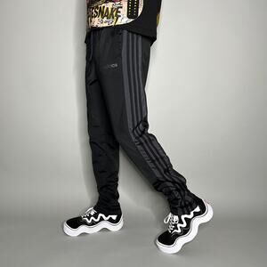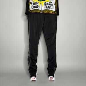 Adidas Sweatpants Jet Black Polyester 3 Stripes Grey Accents