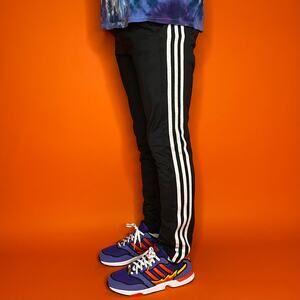 Adidas Sweatpants Jet Black Polyester Joggers White 3 Stripes
