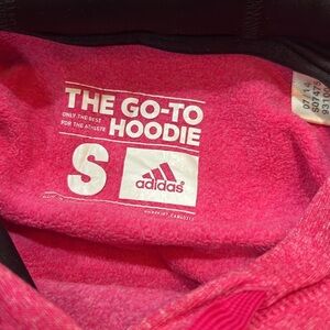 This is for a set of two Adidas sweatshirts. Both adult size small. First is a pink hoodie with black logo “the go to hoodie” lined with thin fleece. Second is a crew neck sweatshirt climawarm lined with thin fleece. Both in great shape and very soft. If you want just one let me know and I’ll relist. Open to offers. Discounts for bundles.