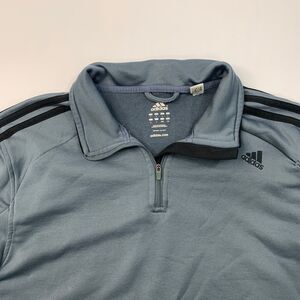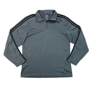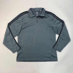 Adidas Sweatshirt Mens L Large Grey Quarter Zip 3-Stripes Activewear Pullover