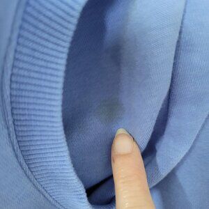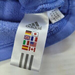 Adidas Sweatshirt Womens M Three Stripe Logo Hoodie Blue Kangaroo Pocket *Stain