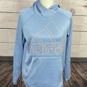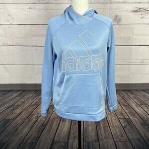 Adidas Sweatshirt Womens Small Blue Logo Hoodie Pull Over Athleisure