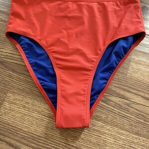 Adidas Swimwear Women L Bright Red High Waist Bikini Swim Bottom.