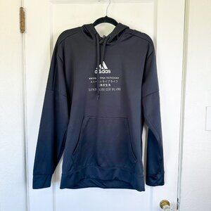 Built for pre- or post-workout comfort, this Adidas men’s full zip hoodie has a smooth knit build. It’s made with clean details, such as elastic trim on the hood and cuffs plus a concealed front zip.