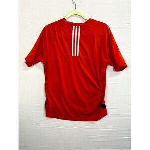 Adidas T-Shirt Mens Large Red Black Short Sleeve 3-Striped Crew Neck Pullover
