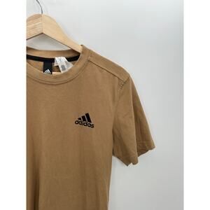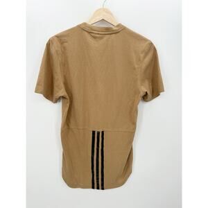 Adidas Tan Brown Short Sleeve Tee High Low Hem Stripes Cotton Men Size Small