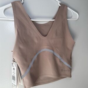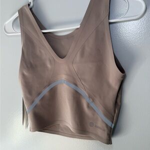 Adidas Tan and Gray Sports Bra with V-Neckline AeroReady