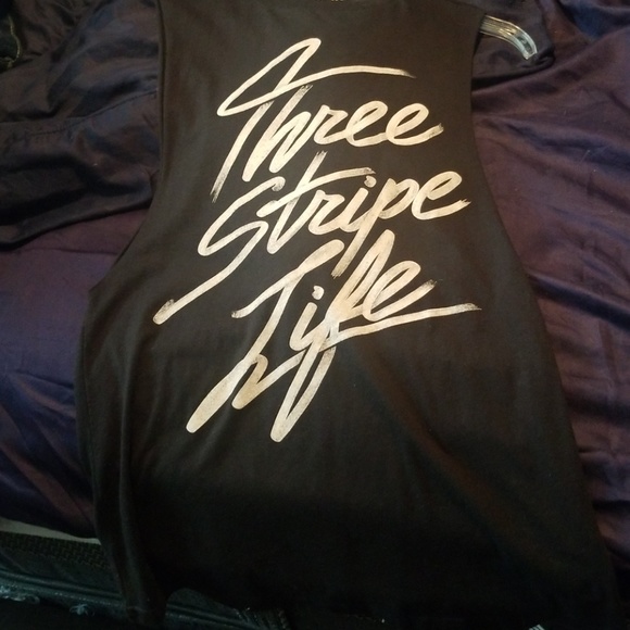 Wide cut sleeves to show off a bralette or another tank underneath. Worn once. Excellent condition. Says Three Stripe Life