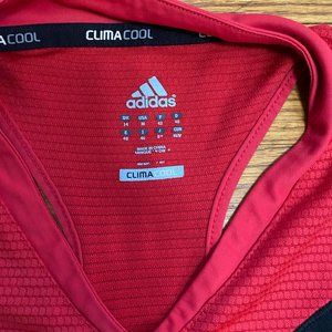 Material: Adidas "Climacool" - zip pocket on the back! Color: Red/Black Very Gently Worn, very nice just too small for me!