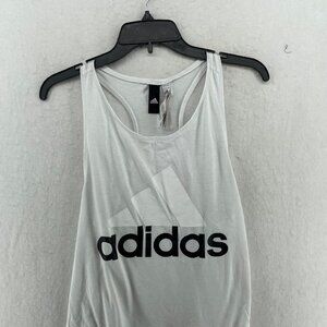 Adidas Tank Top Women's Sz S White Printed Logo Scoop Neck Racerback Relaxed Fit
