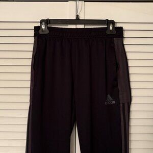 Adidas Tapered Training Pants. Grey Adidas stripes. Drawstring. Zippered ankles. Aeroready. Primegreen.