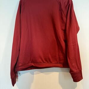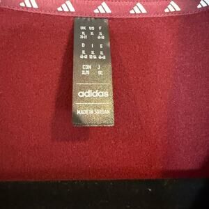 New with tags Adidas Women's Team Issue 1/4 Zip Pullover in a rich 'Shadow Red/White' color. This track top, size XL, is perfect for training or casual wear. It features a convenient 1/4 zip, a front kangaroo pocket, and is made in part with recycled materials. The pullover is designed for comfort and performance, making it a versatile addition to any active wardrobe. Original retail price of $65.00.