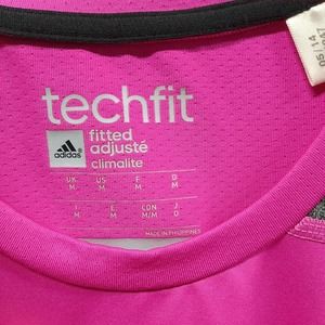 Adidas Tech Fit Climalite Athletic Top Womens Size Medium Pink Activewear Stretch T-shirt.