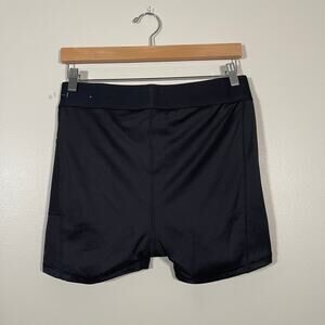 Features: Black high rise biker shorts with one mesh pocket, spandex compression fit, aeroready
