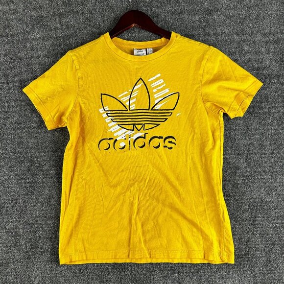 Adidas Tee Shirt Boys Large Yellow Cotton Short Sleeve Logo Crew Neck