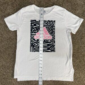 Adidas Tee Shirt Girls Large (14) White Graphic Cotton Athletic Pink logo Sports