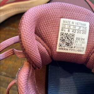 Experience the perfect blend of style and functionality with these Adidas athletic shoes. Featuring a striking pink and white color scheme, these shoes are designed for outdoor activities with a robust sole and traditional lace-up design. Ideal for trail running, they offer both comfort and durability for your adventures.