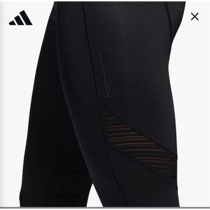 Climacool, elastic waistband drawstring closure, sweat proof zippered pocket, reflective details, flats seams for comfort, body hugging and signature logo