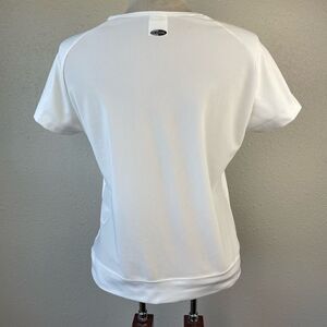 Great athletic top by Adidas measuring 18 inches armpit to armpit laying flat and 22 inches in length from shoulder to hem.