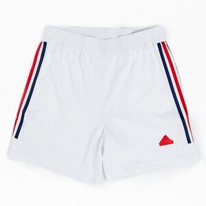 These iconic adidas shorts celebrate international sport with red, white, and navy triple-stripe detailing and an embroidered red logo. Super comfy, mid-rise fit with side pockets and a sleek silhouette.