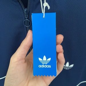 A Adidas Track Jacket in a size Large. New with tags. Retails for $90. Has two pockets inside & out. Zips up.