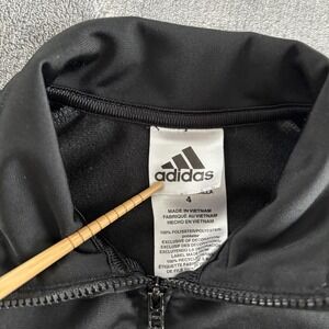 Adidas Track Jacket Black & White Three Stripe Full Zip Coat Boys Size 4