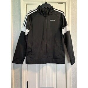 Adidas Track Jacket Boys Youth Size Large 14/16 Black White 3 Stripe Zip Up