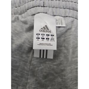 The Adidas Track Pants in size 2XL are warm-up pants designed for men in a sleek black color with white stripes. These straight-leg pants feature a drawstring closure, elastic waist for comfort, and convenient pockets. Made from polyester knit fabric with a 35-inch inseam, these pants are perfect for various activewear occasions such as gym training, walking, weightlifting, and running. The Adidas brand logo adds a touch of athleisure style to the practical and stylish design, making them a versatile addition to any man's wardrobe.