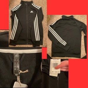 •NEW Adidas Track Pants Size XS BLACK WITH GREY STRIPES (looks green in photo)