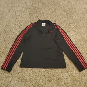 Perfect Adidas tracksuit set to hit the gym or lounge around. Full zip warm-up jacket with pockets. Pants are wide leg and have pockets. Comes from a smoke free home.