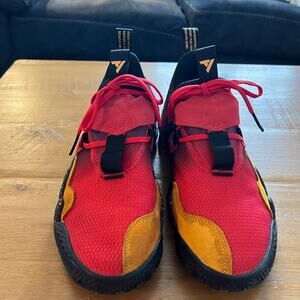 adidas, trae young, basketball shoes, hawks, signature series, boost, lightstrike, performance sneakers, red yellow black, men’s size 9
