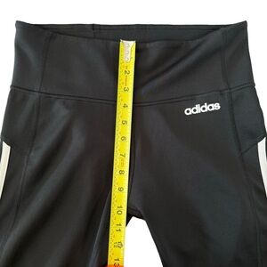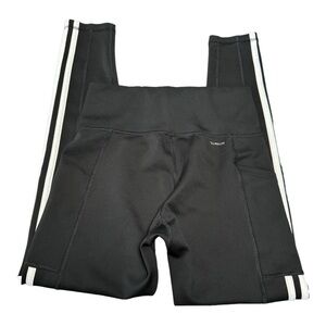This is a stylish pair of Adidas Train Essentials 3-Stripes 7/8 Tight Black White Climalite Leggings in size Small, perfect for various occasions such as travel, casual wear, and activewear. These leggings feature a solid pattern and come in a black color made of Polyester, Spandex, and Polyester Blend materials. Single side pocket.